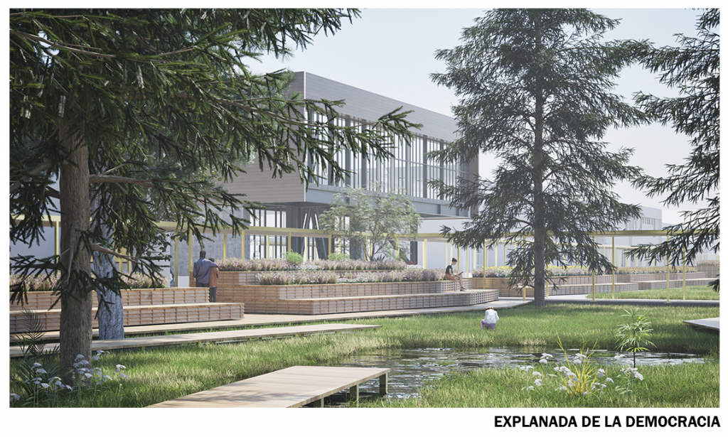 La Explanada de la Democracia, que renueva y pone en valor la tradicional Plaza de la Democracia, como un espacio donde “Todo es Foro”. De esta forma, revitalizará este punto emblemático del Campus, haciéndolo más versátil, acogedor y propicio para la actividad universitaria.